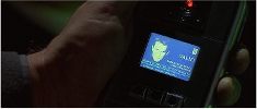 Q gives Bond the cell phone with the fingerprint scanner.