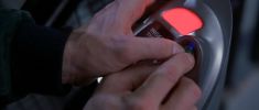 Adam pays the taxi using his fingerprint.