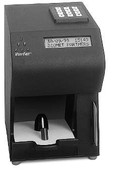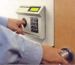 A camera capture an image of the hand, with the help of a mirror to get also the edge. The silhouette of the hand is extracted, and some geometrical characteristics stored.