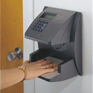 Une caméra prend une photo de la main, un miroir permettant de capturer en même temps le coté. La silhouette de la main est extraite, et on en déduit quelques caractéristiques géométriques.