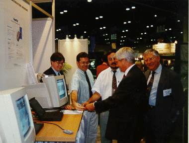 CardTech/SecurTech 1997 showed the very first public appearance of the FingerChip on the Thomson-CSF IDmatics booth. This was a real good success, even the CEO performed some demonstrations as there were so many people wanting to see the device.